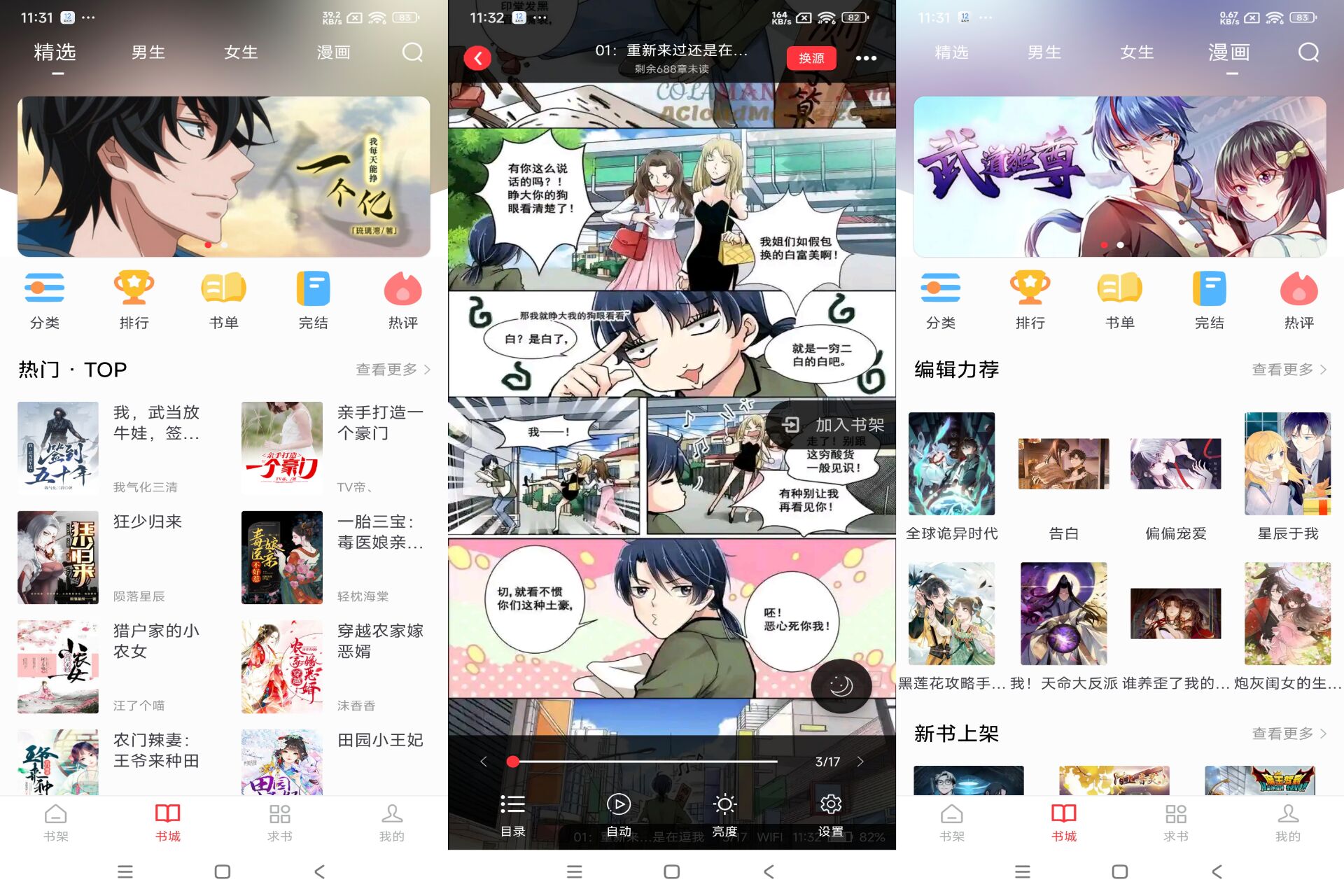 一款小说漫画二合一阅读神器APP,天天读书,海量资源,正版授权。每日更新,精彩不断。题材多样,总有你爱。一键下载,离线畅读。(解锁去广告)
