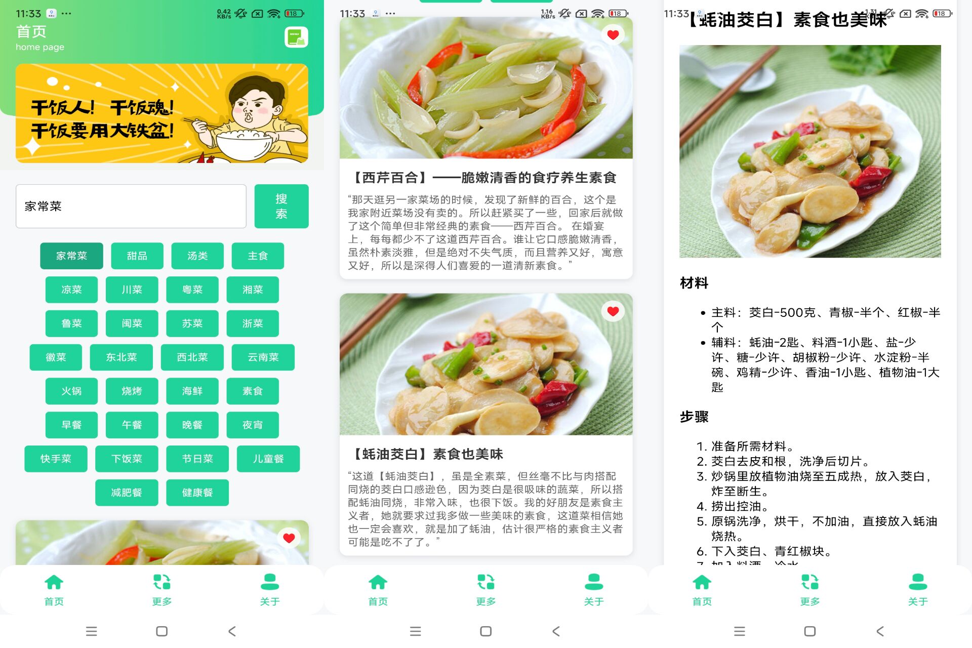 一款美食菜谱APP,里面汇集了非常多的菜谱,自己想吃什么菜一搜名字就出来教程了,用户可以轻松跟着菜谱一步步烹饪美食,帮助用户自主烹饪美食,学做菜,就是这么简单。